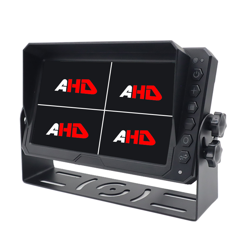 カーリーダー7 インチ 4CH クワッド ディスプレイ AHD 高耐久車両バックアップ モニター、複数のビデオ入力をサポートする高解像度 AHD モニターで、ユーザーは最大 4 台のカメラを同時に表示できます。このモニターは、セキュリティ、監視などのさまざまな用途に使用できます。