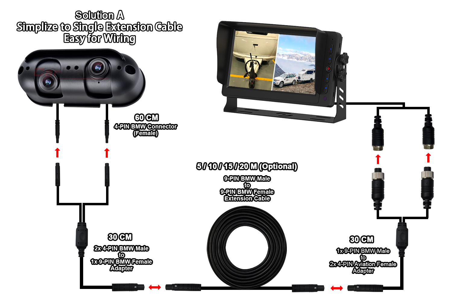 カーリーダー AHD スターライトデュアルレンズリアビューカメラ RV キャンピングカーに適合、優れた品質の新設計のプライベート ツール AHD カメラで、1 台のカメラにデュアル レンズが統合されており、レンズ角度は個別に調整できるため、ユーザーは同じモニターで近距離と遠距離の両方を表示できます。このカメラは、トラック、バス、フォークリフトなどの大型車両に適合するだけでなく、 RVやキャラバンなどのキャンピングカーにも適しています。