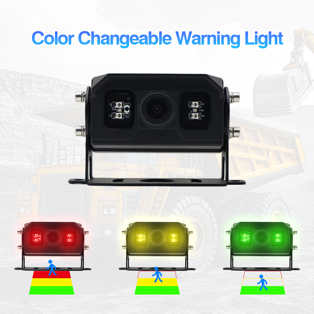 AI BSD カメラには色変更警告灯が内蔵されており、物体が対応する検出エリア (赤、黄、緑) に入ると、光の色を変更できます。