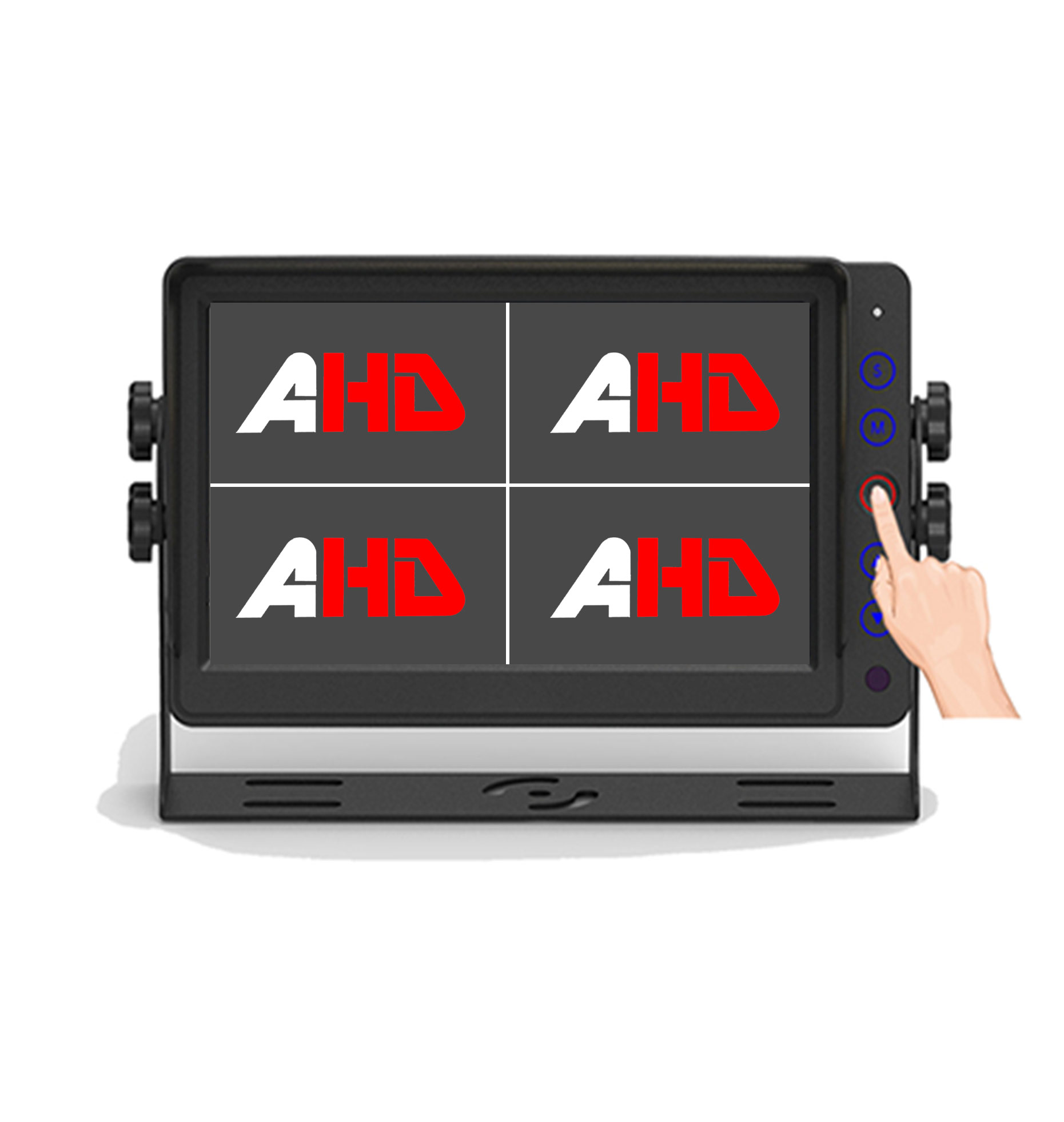 The 7インチAHD高解像度タッチキーリアビューディスプレイ ドライバーに比類のない視覚的エクスペリエンスと安全性の運転保証を提供し、4つのAHD(アナログ高解像度)またはCVBSカメラチャンネルを7インチ1024*RGB*600高解像度TFT LCDリアビューモニターに統合します。 7インチAHDクアッドリアビューモニターの優れた「クワッドビュー」機能は、4つのカメラすべてを同時に監視し、駐車または運転時に車両の盲点を排除するのに最適です。以下は、タッチボタンを備えた7インチの車のリアビューモニターの主な機能です。
