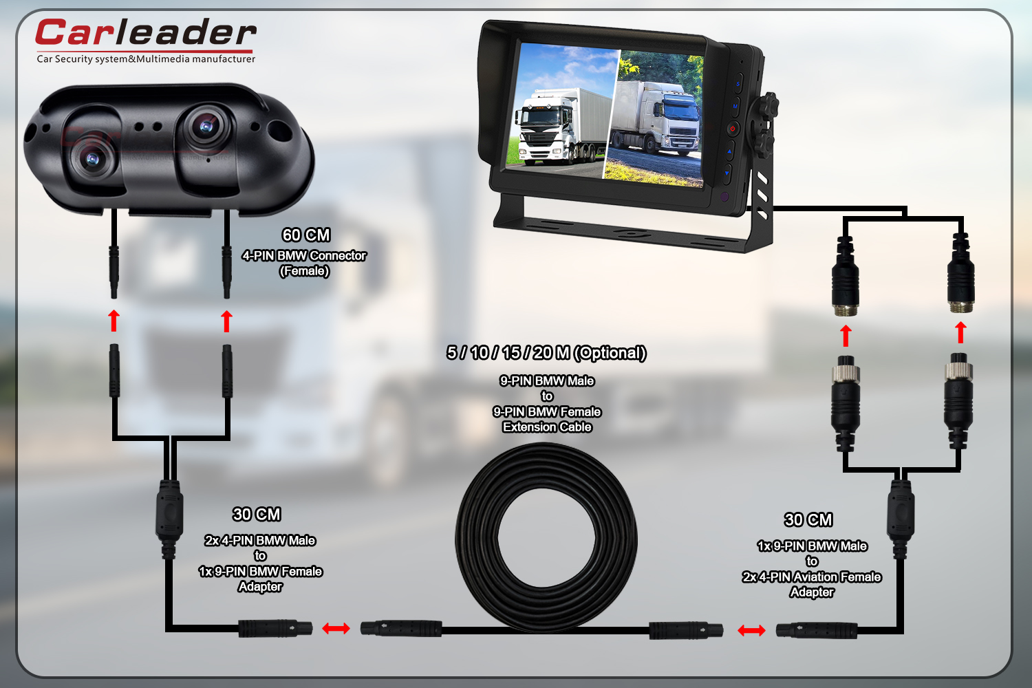カーリーダーは、さまざまな配線のニーズに合わせて、スターライト防水デュアルレンズHDヘビーデューティリアビューカメラに2つの異なる配線ソリューションを提供します。