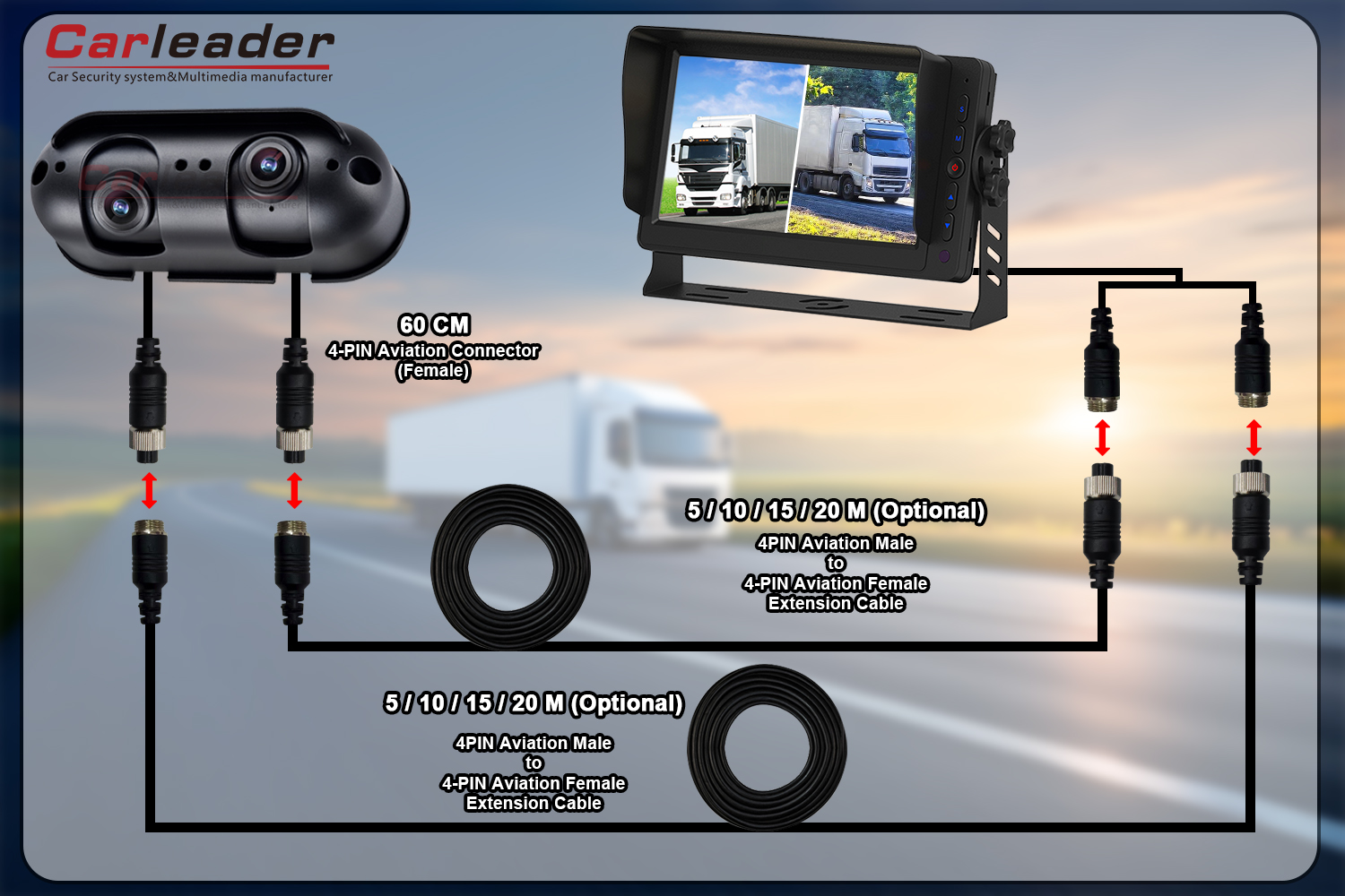 2 番目の解決策では 2 本の延長ケーブルが使用されますが、カメラの定義は標準 4 ピン 航空コネクタです。延長ケーブルが標準 4 ピン 航空コネクタである限り、延長ケーブルと互換性があります。