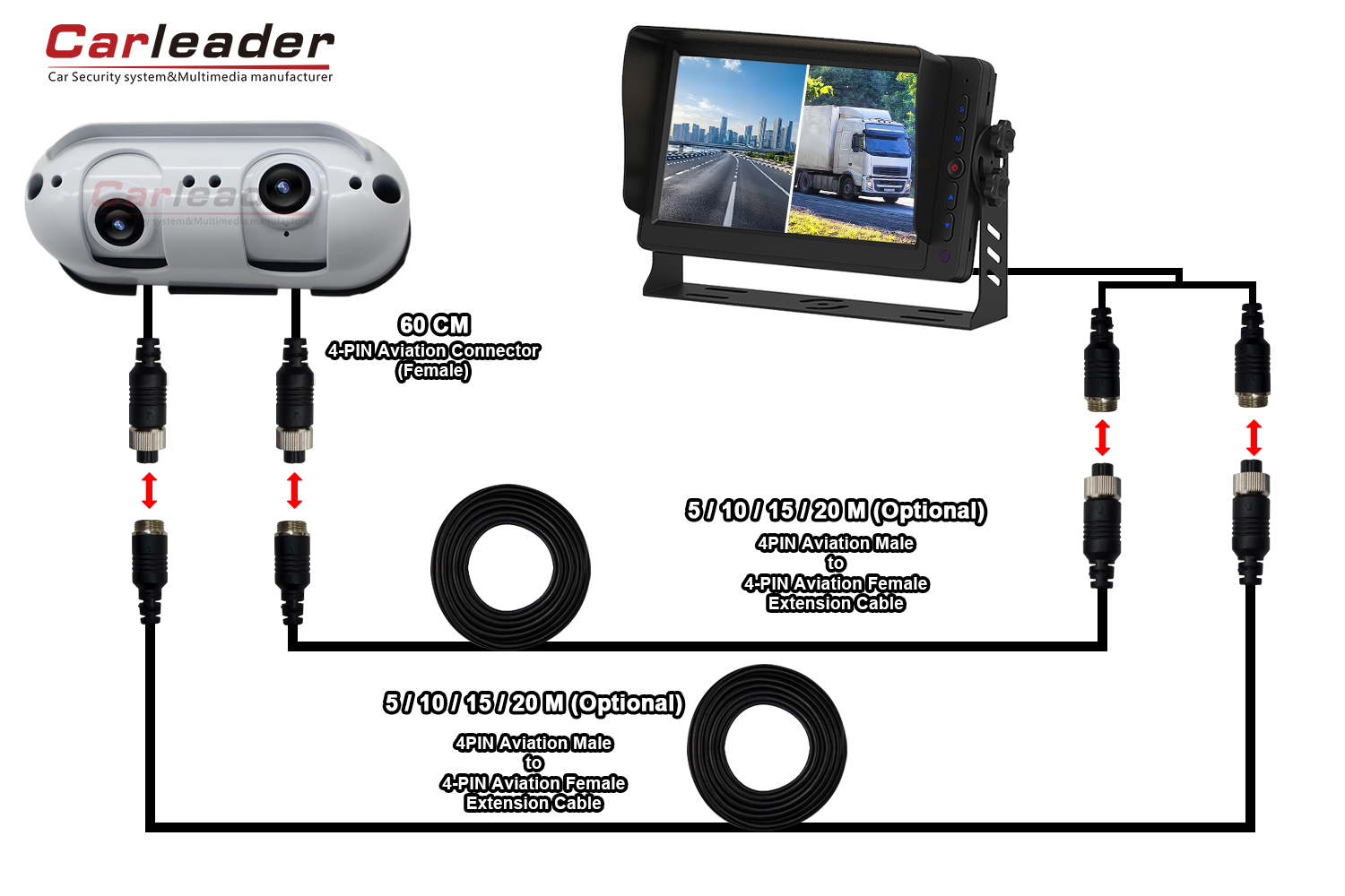 カーリーダーは、さまざまな配線ニーズに合わせて、AHD Starlight デュアル レンズ ヘビーデューティ リアビュー カメラ用の 2 つの異なる配線ソリューションを提供します。