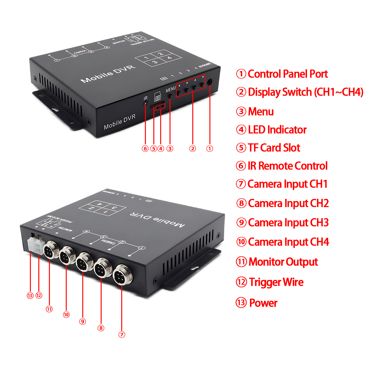 *統合DVR録画:ループ録画機能をサポートし、映像をTFカードに直接録画し、最大容量512GBで録画時間を延長します。